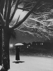 It wasn’t raining anymore. It wasn’t even snowing. But she had opened her umbrella indoors by accident, so she had had to step outside to avoid the bad luck that would follow, perhaps by going to a crossroads, and spinning around three times…