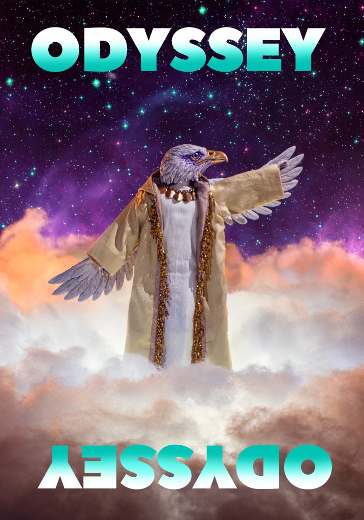 Image Description: a photo depicting a custom doll from one of Claire’s trance encounters, transmitted in the shape of a white eagle over a background of cosmic skies. Image Credit: with permission from the copyright owners, Wyldheart and Wright.
